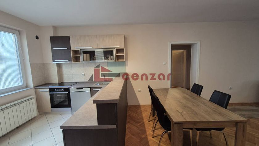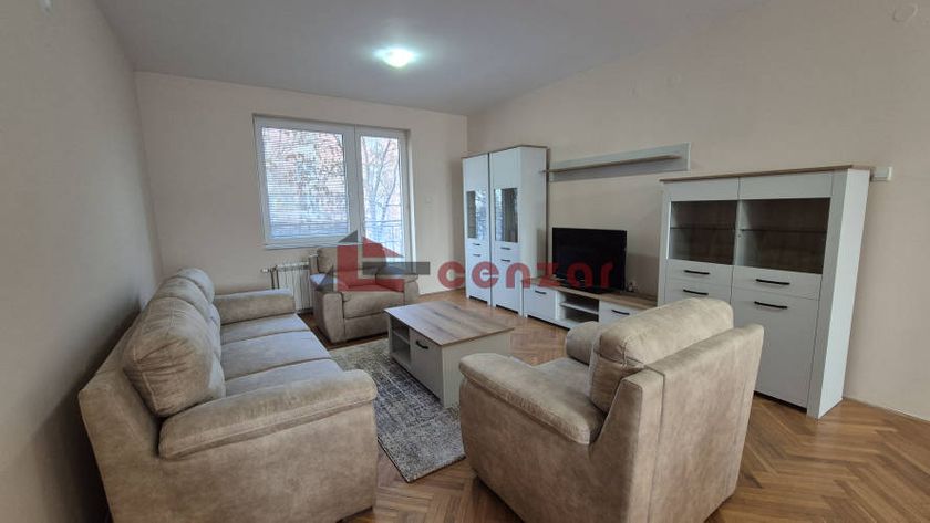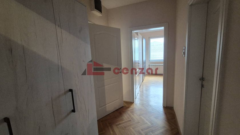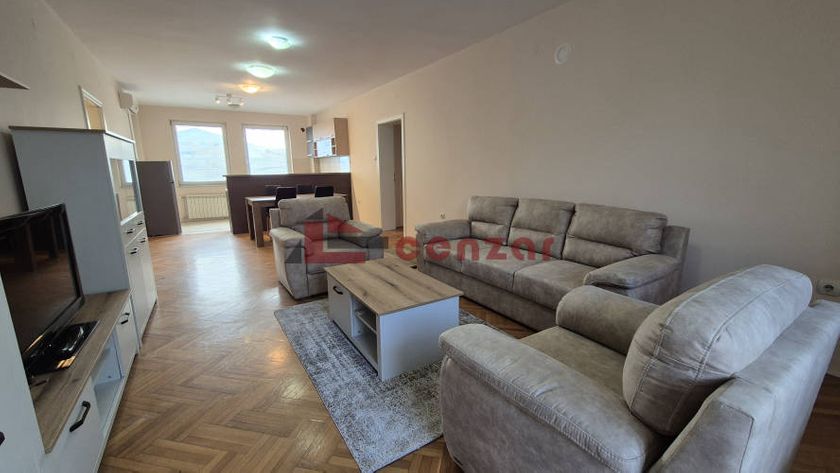 Izdaje se namešten prostran stan površine 103m2.Sastoji se od dve spavaće sobe.dnevnog boravka koji je spojen sa kuhinjom i trpezarijom ima izlaz na dve terase,kupatila i sanitrnog čvora.Nalazi se na prvom spratu u zgradi bez lifta.Grejanje gradsko bez alokatora.U blizini se nalazi škola,prodavnica,vrtić.