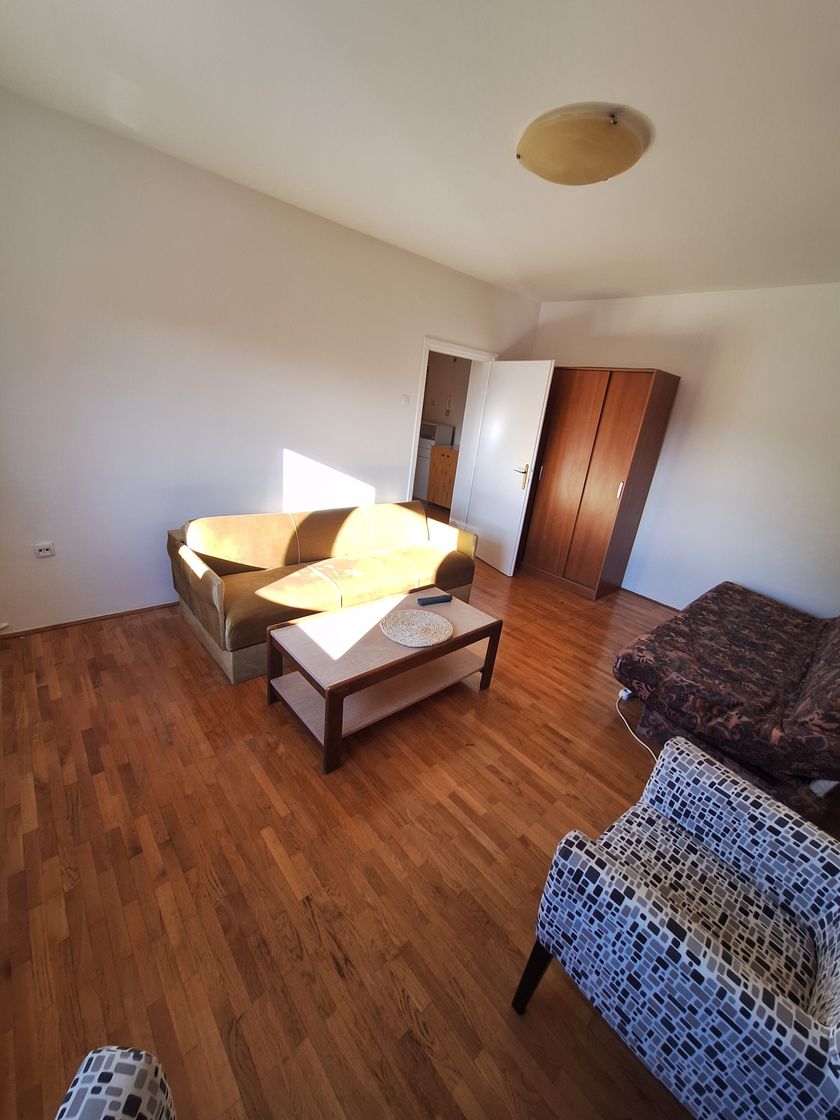 Jednosoban stan sa odvojenim predsobljem i kuhinjom u zgradi sa liftom. Pozicioniran je ka jugozapadu. Stan je na 5min hoda od glavne autobuske stanice, 10min hoda od glavne zeleznicke i 5min hoda od centra grada.