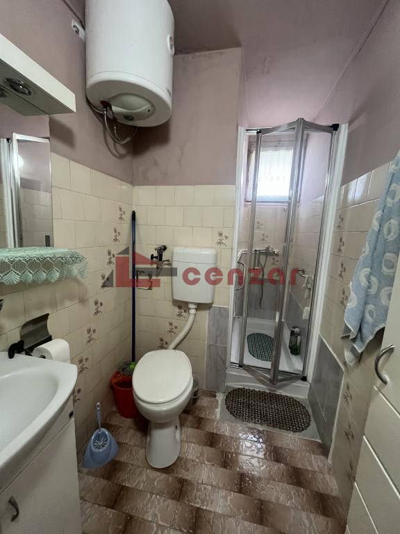 Prodaje se stan u starijoj održavanoj zgradi sa liftom na šestom spratu.Sastoji se od dnevne sobe koja je prolazna,kuhinje sa trpezarijom i ostavom,kupatila,i spavaće sobe koja ima izlaz na terasu.Grejanje centralno,stolarija drvena i pvc.