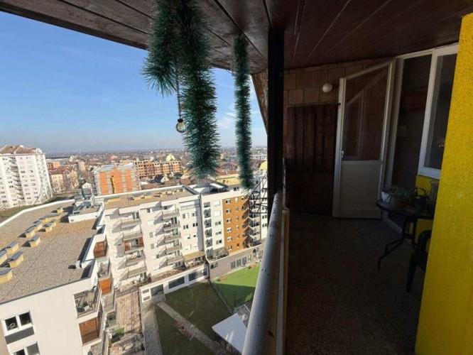 Subotica – Radijalac, prodaje se trosoban namešten stan površine 66kvm na jedanaestom spratu (11/11) u zgradi sa dva lifta. U svom sastavu stan poseduje: dnevnu sobu sa kuhinjom, dve spavaće sobe, predkupatilni prostor (garderober ili prostor za veš), kupatilo i terasa. Pripadajuća podrumska ostava. Stan je zanimljiv zbog svog položaja u potkrovlju i odličnog pogleda. Sama zgrada je arhitektonski simbol Subotice! Prodaje se sa komplet nameštajem i uređajima! Stolarija je drvena, na podovima je laminat i keramika, TFS, grejanje je na struju preko Norveških radijatora (odjavljeno sa toplane). Odlična lokacija, okružena marketima, pakarom, vrtićem, školom, i parkom! Uredni papiri, vlasništvo 1/1! Red. br. 26-S10