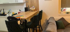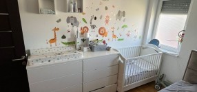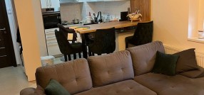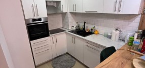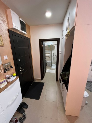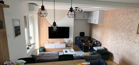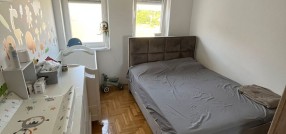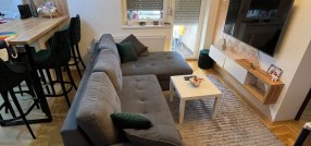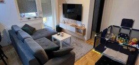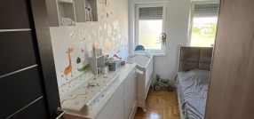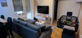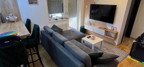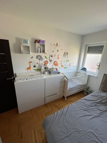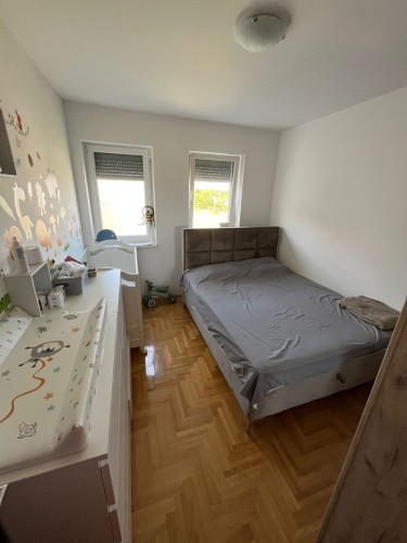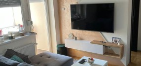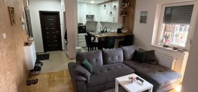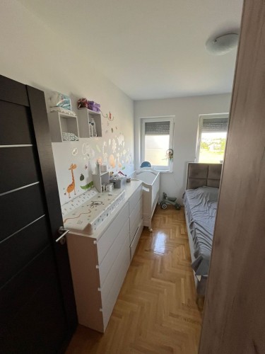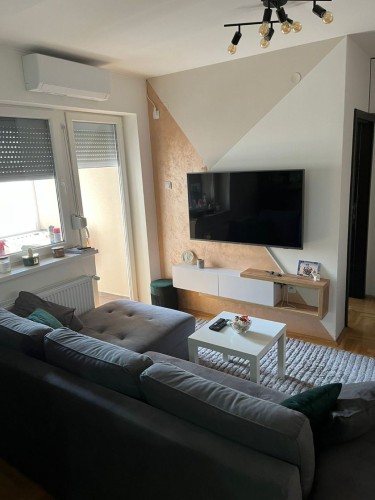 **Stan u novogradnji,** **potpuno namešten** i opremljen belom tehnikom i uređajima. Sastoji se od dnevnog boravka, kuhinje sa trpezarijom, spavaće sobe, kupatila, predsoblje i zatvorena terasa/lođa/.
