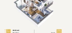 Stan u novogradnji površine 66,01 m2 koji se sastoji od dnevnog boravka sa kuhinjom i trpezarijom, dve spavaće sobe,kupatila. Stan će imati podno grejanje koje se ističe niskim troškovima grejanja na prirodni gas, kvalitetnu aluminjumsku stolariju sa troslojnim niskoemisionim staklom i PVC roletnom. Zidovi su izgrađeni od termoblokova najviših izolacijskih svojstava + fasadna izolacija.Pregradni zidovi izgrađeni su od opeke. Na podovima će biti tarket podne obloge u sobama i trpezariji, a keramika I klase u kupatilima i kuhinji. U kupatilu tuš paravani od kaljenog stakla i linijski slivnici i ugradni vodokotlići. Stan će imati sigurnosna ulazna vrata,optički priključak,interfon iinstalacije za klimu. Završetak radova kraj 2027. godine.