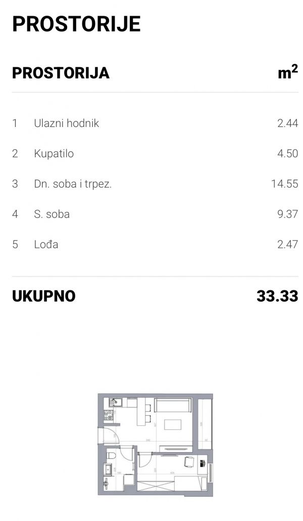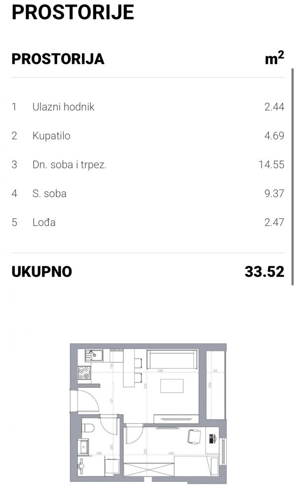 - Površina: 33m2