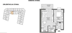 Stan u novogradnji površine 49,31m2 koji se sastoji od dnevnog boravka sa kuhinjom i trpezarijom, kupatla, spavaće sobe i terase.Zgrada je građena od termoblokova najviših izolacijskih svojstava+fasadna izolacija.Pregradni zidovi će biti izgrađeni od opeke. Tarket podne obloge u sobama i trpezariji a u kuhinji I kupatilu I klasa keramike i tuš paravan od kaljenog stakla, linijski slivnik i ugradni vodokotlić. Stan će imati sigurnosna vrata, optički priključak, interfon i instalacije za klimu. Rok završetka poslednji kvarta kvartal 2027.godine.