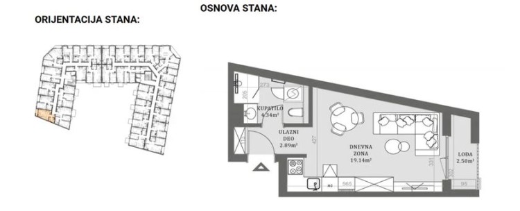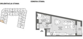 Stan u novogradnji površine 28,87m2 koji se sastoji od dnevnog boravka sa kuhinjom i trpezarijom, kupatila i terase.Zgrada je građena od termoblokova najviših izolacijskih svojstava+fasadna izolacija.Pregradni zidovi će biti izgrađeni od opeke. Tarket podne obloge u sobama i trpezariji a u kuhinji I kupatilu I klasa keramike i tuš paravan od kaljenog stakla, linijski slivnik i ugradni vodokotlić. Stan će imati sigurnosna vrata, optički priključak, interfon i instalacije za klimu. Rok završetka kraj 2027.godine.