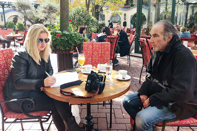 Napolju topao jesenji dan, sedimo u kafiću koji vrvi od života, oko nas neki lepo obučeni svet, promiču ljudi, javljaju se u prolazu... A on u crnom kaputu. I novinar u crnom – jedna od “onih slučajnosti”. I neke crne priče oko nas...