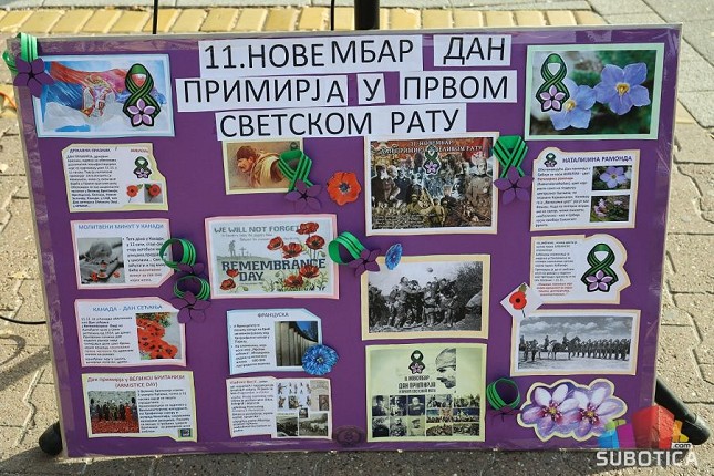 - Naša škola već tradicionalno kroz interdisciplinarni čas obeležava 11. 11. Dan primirja u Prvom svetskom ratu. To je dan koji slavi čitav svet koji je pobedonosno izašao iz tog tada Velikog rata. Englezi nose bulku, Francuzi različak, a mi nosimo Natalijinu ramondu. Taj simbol nam je ovog puta poslužio, zapravo pomogao u humanitarnoj akciji za jednog našeg učenika, Lea, kome je potrebna pomoć da bi imao detinjstvo jednako onom koje imaju ostali učenici u njegovom razredu. Ove godine, napravili smo mali program u kome želimo da podsetimo i naše Subotičane da ovaj dan treba da se slavi i kod nas onako kako ga slavi svet. To je veliki praznik mira, slobode, ljubavi, praznik koji je konačno zaustavio rat i doneo mir - ističe Katarina Božić Petronijević, profesor istorije u OŠ "Matko Vuković".