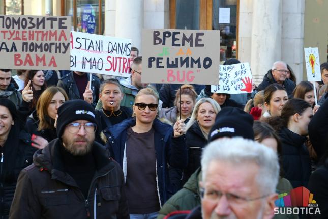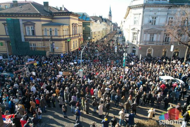 Današnji skup je zatvoren javnim pitanjem koje su postavili Studenti u blokadi: - A šta je to sloboda ako Subotica nije?