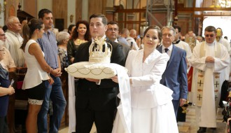 Svečanost je započela blagoslovom ovogodišnjih nosilaca žetvenih svečanosti, bandaša Marka Križanovića i bandašice Marije Pijuković, u crkvi Svetog roke, nakon čega se svečana povorka uputila od katedrale Svete Terezije Avilske prema Trgu Slobode, predvođenja brojnim kulturno-umetničkim društvima iz našeg grada i regiona. Na karucama okićenim žitom, pristigli su bandaš i bandašica, a po starom običaju dočekali su ih gazda i gazdarica, te poškropili vodom i mekinjama.