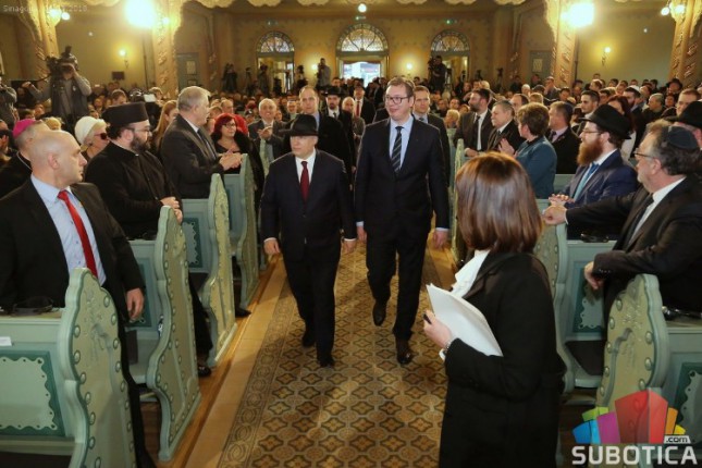- Sinagogi je vraćen sjaj, a jevrejskoj zajednici dug za veliki doprinos razvoju Evrope i sveta. Srbi i Mađari već žive zajedno u Subotici, a danas šaljemo poruku da je ovo Evropa u kojoj želimo da živimo - u miru i bezbednosti svi zajedno – poručio je Orban. - Svi narodi Evrope žive na temeljima jevrejske i hrišćanske vere i želimo i dalje žele da živimo u Evropi u kojoj postoji sloboda vere, nacije i jezika. U svetu i dalje postoje mesta gde su ljudi proganjani i gde se ne obnavlja već se ruši, ali sam ponosan na versku tradiciju Evrope koja gaji toleranciju.