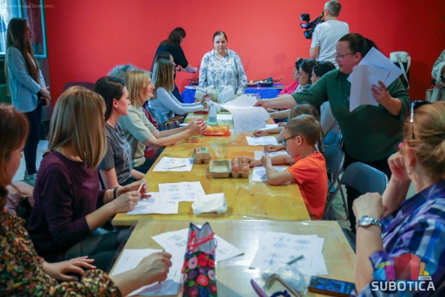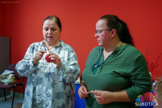 - Vosak se topi, nanosi se na alat od drveta, na kraju ima pero od metala, kao točir. U to se namoči vosak i nanosi se na hladno jaje. Vosak se stvrdne, a jaje se potapa u hladnu farbu, i kada se farba primi, vosak se lagano skida, pored sveće. To je kod nas manje poznata tehnika, koja se više koristila u neka davna vremena. U našim zbirkama po muzejima Vojvodine može da se pronađe - ističe Olga Kovačev Ninkov, direktor Gradskog muzeja.