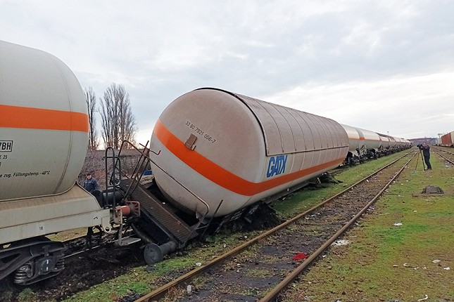 U pitanju je kompozicija od 23 vagona-cisterne,19 cisterni je već uklonjeno sa mesta iskliznuća. Večeras ili tokom sutrašnjeg dana stići će dizalica pomoću koje će se preostale 4 cisterne vratiti na šine.