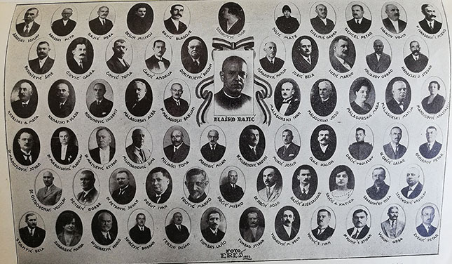 Šimun Budimčević, Veco Buljovčić, Tome Čović, Mate Dulić, Koloman Ivanković, Gavro Đelmiš, Petar Gencel, dr Mirko Ivković Ivandekić, Matija Išpanović, Bela Jurić, Marko Jurić, Ljudevit Kopunović, Albe Malagurski, dr Babijan Malagurski, Ivan Malagurski, Josip Malagurski, dr Stipan Matijević, Šimun Milodanović, Josip Mukić, Bela Orčić, dr Bela Ostrogonac, Mijo Prćić, Ive Prćić, dr Joso Prćić, Aleksandar Rajčić, Blaško Rajić, Vojislav Stanković, Bela Stantić, dr Vranje Sudarević, Lajčo Tumbas, Stipan Tumbas, Veco Vidaković, profesor Ivan Vojnić Tunić, dr Stipan Vojnić Tunić, Grgo Vuković, Matija Malagurski, Lazar Orčić, Andrija Ćakić, Gavro Čović, Kalor Olka, Ivan Pešut, Petar Bajić, dr Vladislav Manojlović, dr Jovan Manojlović, Bogdan Svirčević, Ignjat Aradski, Mita Aradski, Milivoj Bešlin, Blagoje Bojić, Vojin Isakov, Obrad Krljakov, Stevan J. Krnajski, Mata G. Krnajski, Vlada P. Krnajski, Milan Marodić, dr Radivoj Miladinović, Petar Ognjanov, Đorđe Pendžić, Đura Popović, Bogoljub Prešić, Marko Protić, Toša Segedinčev, Dušan Terzin, dr Jovan Latinčić, dr Vitomir Ludajić, Petar Marković, Toma Miljački. Od dama su birane: Mara Malagurski, Manda Sudarević, Katica Rajčić, Olga Stanković i Anastasija Manojlović, sve osim Mare Malagurski bile su supruge uglednih Subotičana, takođe biranih u Skupštinu.