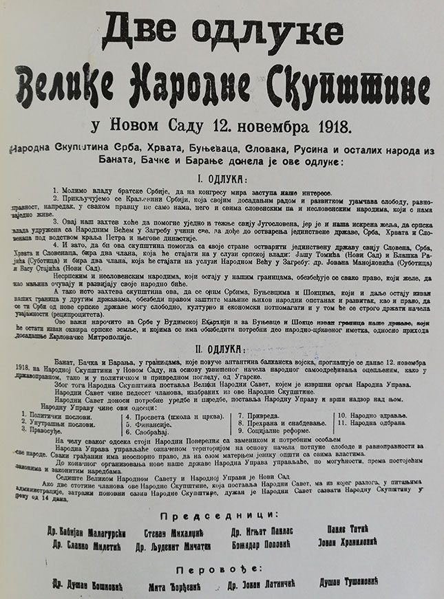 Dan nakon novosadske skupštine, 26. novembra 1918. godine, Velika narodna skupština u Podgorici je odlučila o ujedinjenju sa Kraljevinom Srbijom.
