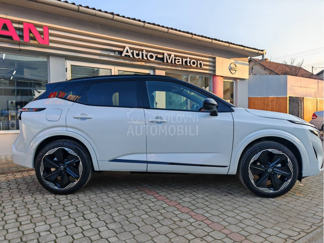 Nov Nissan Qashqai sa 4x4 pogonom. Garancija 8 godina ili 160.000km. Dvobojna karoserija, BOSE Audio sistem. Atraktivan dizajn. Dostupne boje: Pela Bela sa crnim krovom, Crveni metalik sa crnim krovom.