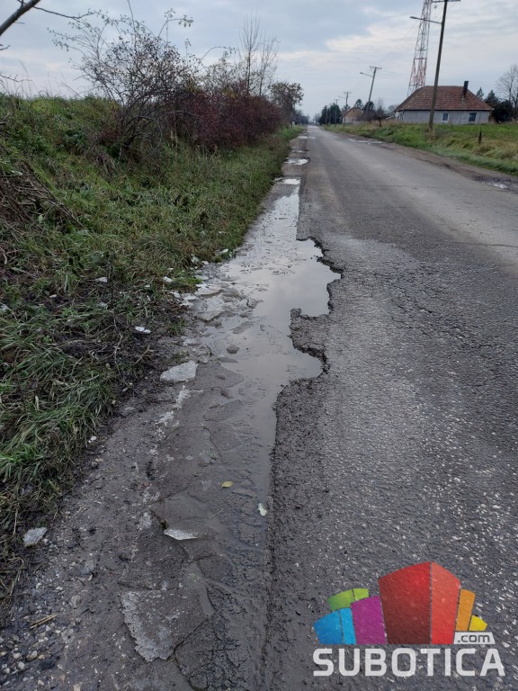 Ivice su skroz iskrzane, bankine uništene, duboke i do 30cm, dubina rupa se ne može proceniti jer su pune vode.