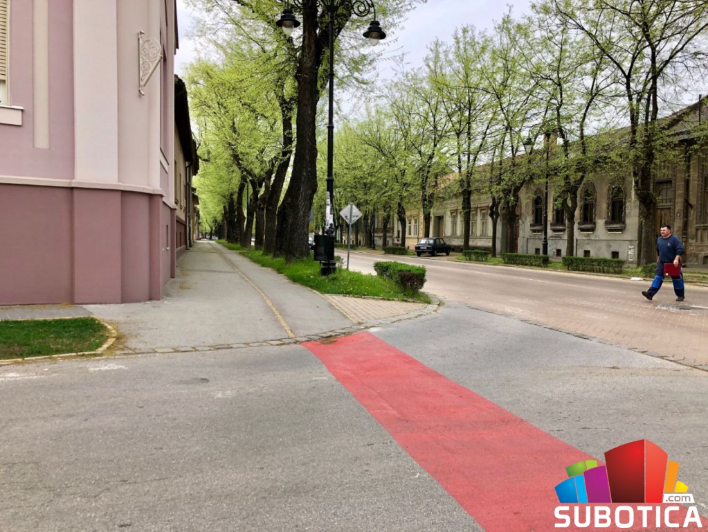 Danas su iscrtali crvene trake za bicikliste u ulici Braće Radić.