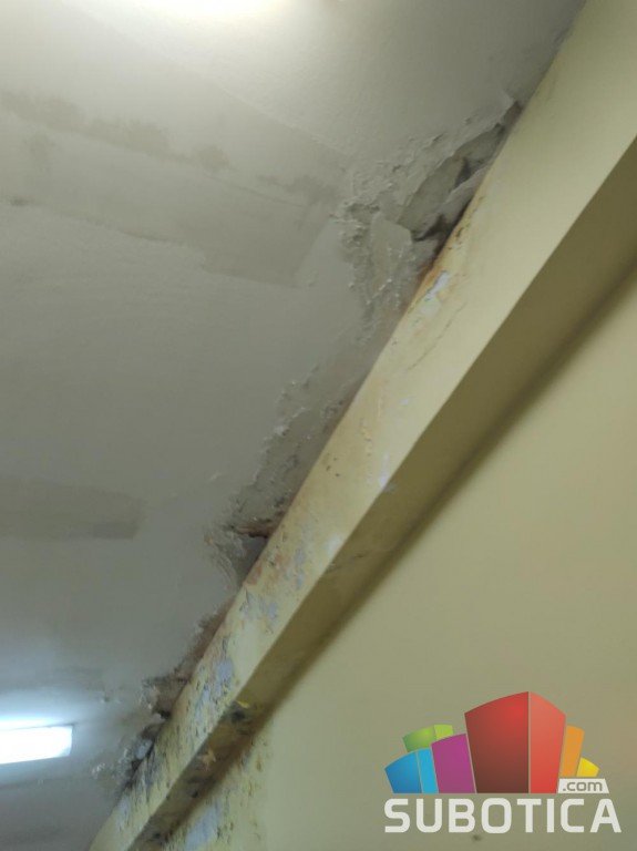 Već neko vreme u jednom hodniku vrtića Mandarina curi voda iz instalacija izgleda i devastira zid i plafon, plus ugrožava i decu i zaposlene, jer je u blizini curenja električna instalacija (videti priložene slike).