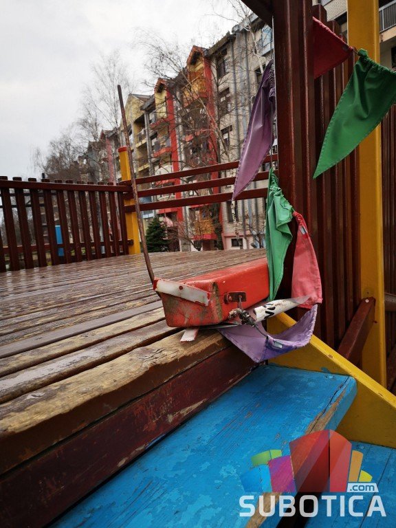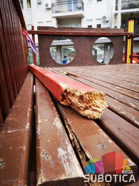 Nekoliko dana već leži polomljena greda iz koje viri metalna šipka na igralištu brodić na Prozivci, koja je opasna po zdravlje pa čak i život dece ☹️