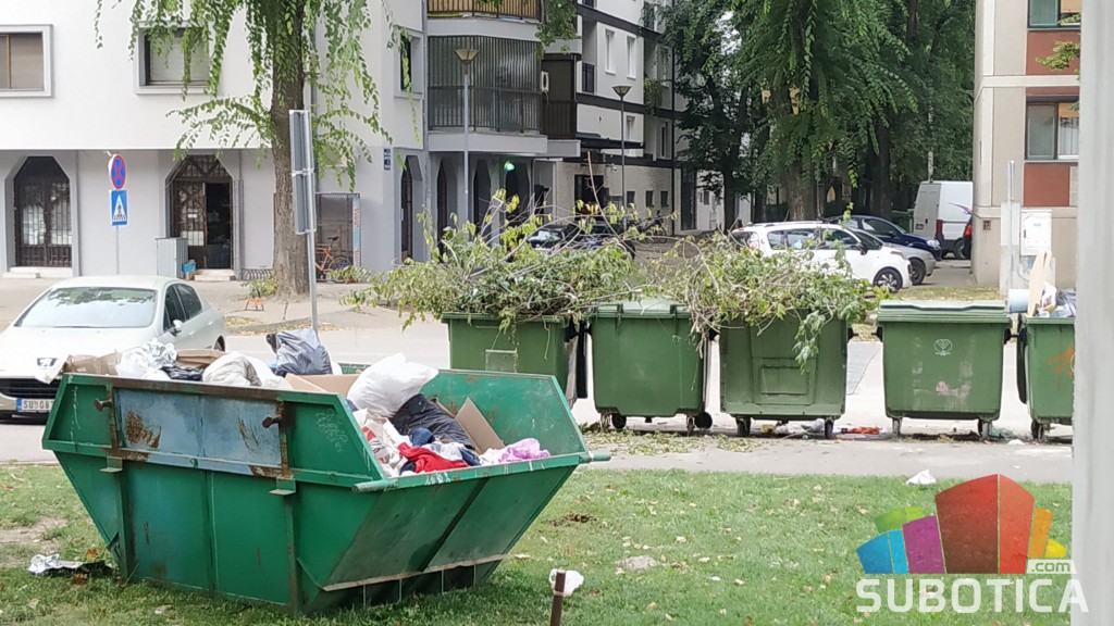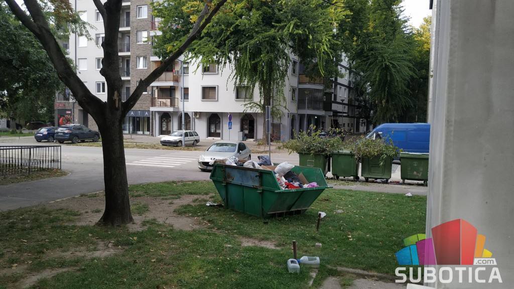 JKP „Čistoća i zelenilo“ Subotica veliki kontejner zapremine V=5 m3 periodično( vikendom) postavlja na lokaciji Petra Lekovića 2, kako bi građanima pružili dodatnu mogućnost odlaganja otpada. Pošto su oko malih kontejnera V=1,1 m3 u trenutku postavljanja bila parkirana vozila, bili smo prinuđeni da ovaj veliki kontejner privremeno postavimo na zelenu površinu, a ne uz male kontejnere.
