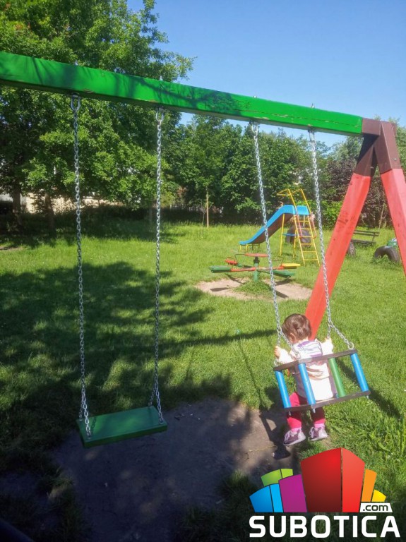 Jedno jutro smo šetali prema igralistu od Nirvane gde je bila jedina ispravna ljulja za bebe u krugu 1km. Slučajno smo primetili nove postavljene ljulje za bebu i odmah pored nje - za malo veću decu. Nove, bez trna, divne,udobne, sijaju, .....