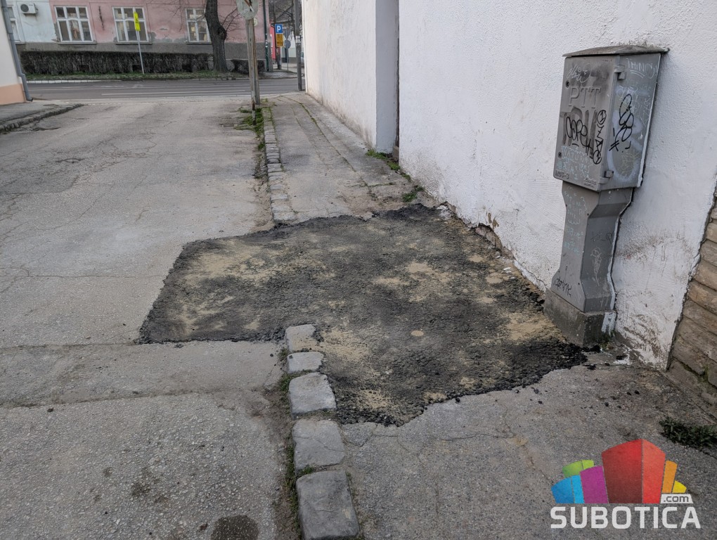 Zviždaljka zbog zaista neprofesionalne "popravke" kolovoza i pešačke staze u ulici Endrea Bajči Žilinskog u samom centru grada uz glavni put. "Popravka" je urađena nakon nekih radova na gradskoj kalanizaciji u ulici. Usput su i ivičnjaci skinuti i odnešeni, ulica je veoma stara i ti ivičnjaci su tamo bili sigurno 80 godina, s obzirom da je ispod asfalta još stara kaldrma, jedino su stari ivičnjaci ostali vidljivi, a sad su odnešeni, bahato. Ne znam kako bi se ovo moglo okarakterisati sa pravim rečima, treba da se uradi prema pravilima struke i vrati originalni izgled.