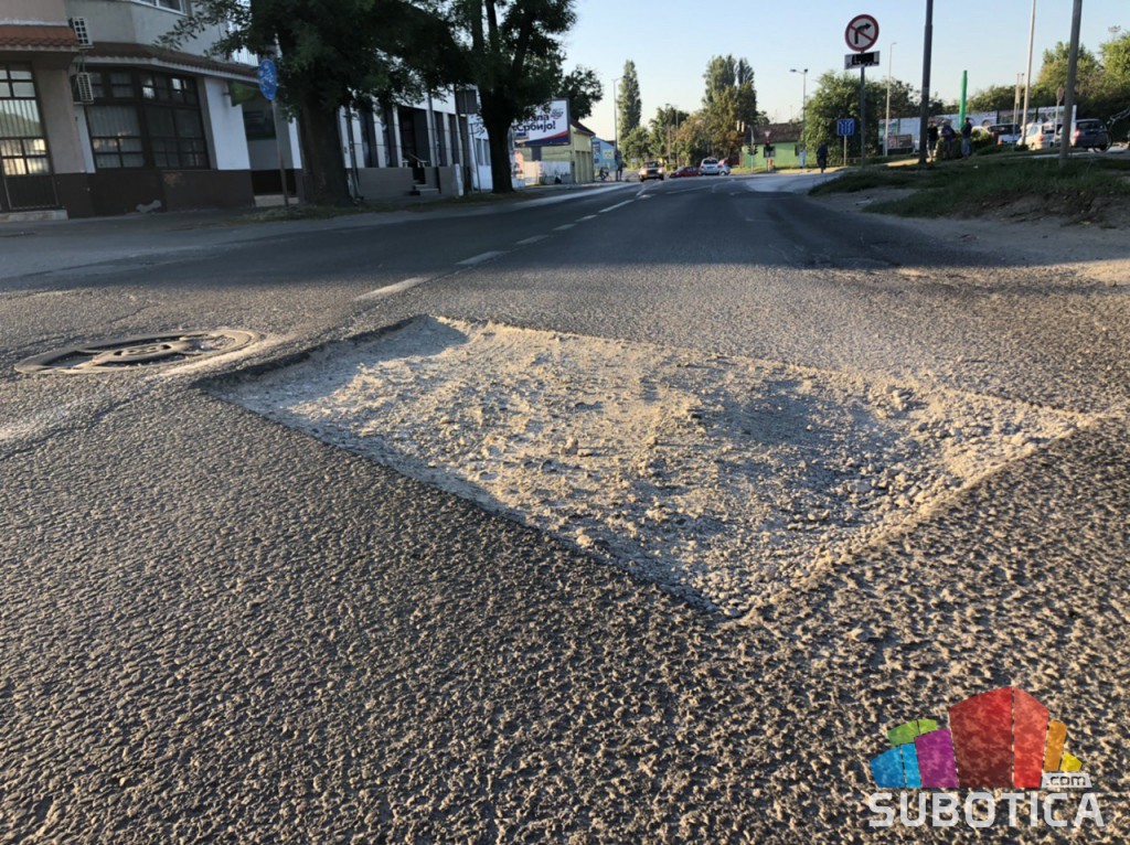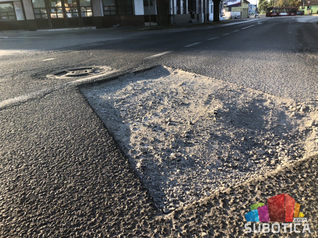 Na vrlo prometnom mestu, u Ulici Jovana Mikića (kod Mol pumpe) udarna rupa širine dva metra zbog nezavršenih i neobeleženih radova na putu.