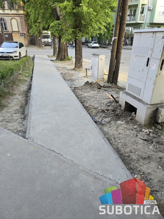 Ok. posle 5 godina postavljen je deo trotoara na jednoj od najprometnijih staza ( pravac Mlečna pijaca, Gluvonema, Maxi - Frankopanska ) na Radijalcu. Ne moramo više da gazimo po prašini ali da li je realno da je neko ko je naručio ovaj posao ili je odgovoran za njega zadovoljan urađenim. Staza je tu ali, ostao je šut svuda okolo, višak betona prosut pored, pesak takođe, rupe oko staze, smeće od zaštitnih traka, zemlja neporavnata nego ostavljena u gomilama nabacana na tel-tv ormariće...ne radi se o bankini, zelenoj površini, popločanom parkingu što bi u uređenom svetu bilo normalno,...ako radnici ne umeju ili ne smatraju da treba bolje pa valjda postoji neko ko to treba da isprati i da ih usmeri, pa da urađeno izgleda pristojno. Za skoro pa centar grada ovo izgleda strašno...