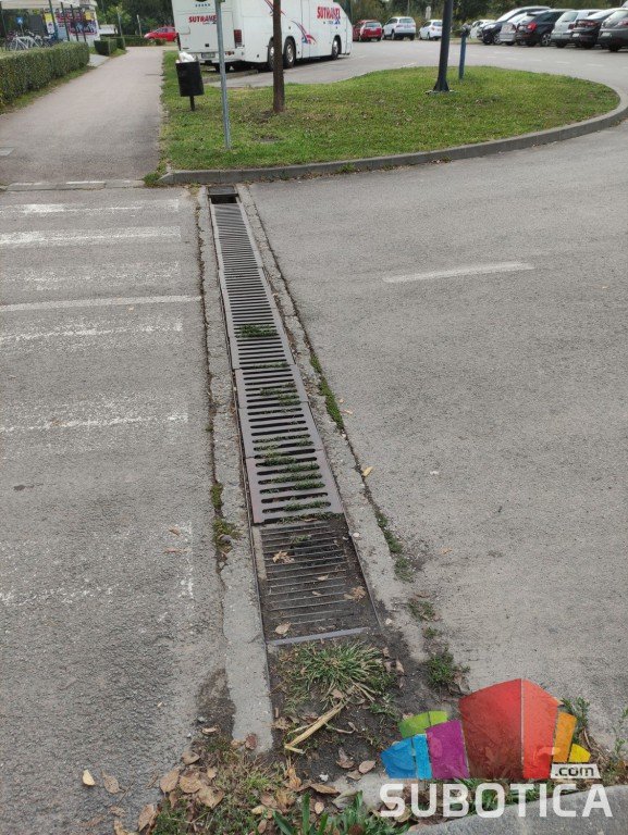 Oštećeni, napunjeni zemljom i lišćem slivnici kod bazena na Prozivci