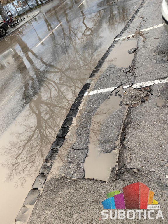 Takodje i na parking stajalištu su rupe pa čovek lako može izvrnuti nogu ili stati u vodu, kao i na trotoaru ispred samog ulaza ispred broja 14 gde se voda takođe zadržava.