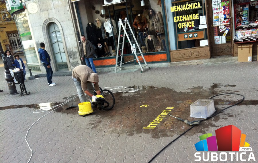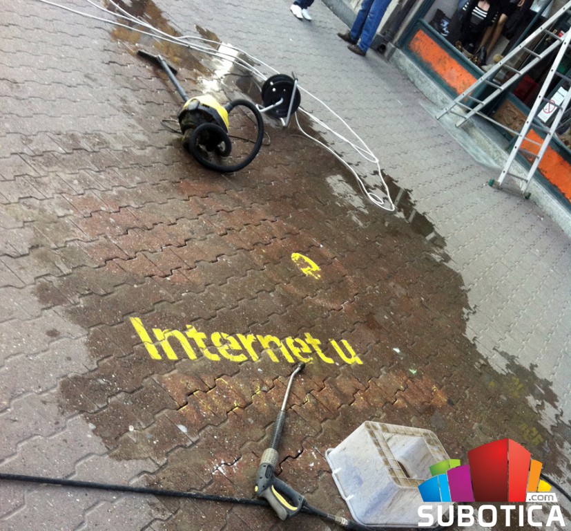 Odmah da kažem da sam pištaljku stavio u kategoriju pohvalno! Prolazio sam pre koji dan i slučajno videh ovu "glupost" napisanu na betonu u centru. Dobro, kakav nam je centar, šta god da išvrljaju neće puno odudarati, ali baš mi je nekako bezveze izgledala ova "reklama" za telenor (čini mi se) besplatan internet? Pa ko još to tako radi? Elem, dvoumio sam se da li da slikam, pošto je noć bila pa nisam imao ni fotoaparat, a ni mobilni koji dobro slika noću. Ali danas iskoristih priliku, pa pohvaljujem što skidaju ovu reklamu. Molim vas nemojte ništa ovako stavljati više. Hvala. Mihajlo.Komentara