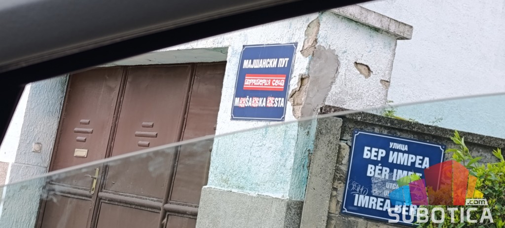 Uništena ulična tabla na uglu Majšanske ulice i Imrea Bera